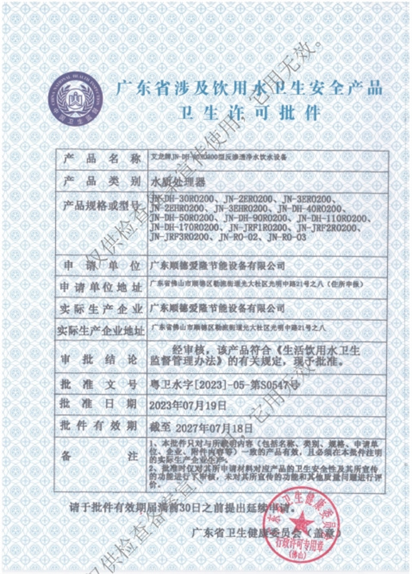廣東省涉及飲用水衛生安全產品衛…